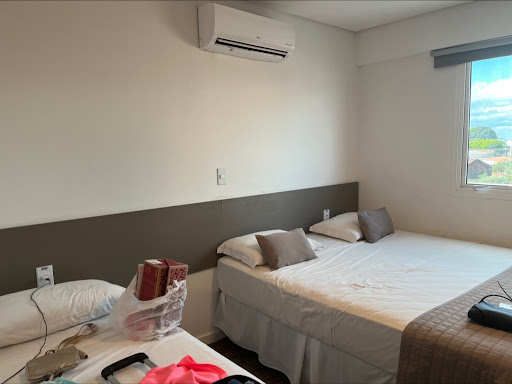 Read moreÓtimo hotel em Ponta Porã (fica localizado quase em frente ao hotel cassino amanbay porém do lado Brasileiro), possui várias opções de entretenimento em volta. Parece ser um hotel novo, tudo moderno e bem limpo. Quarto triplo R$280 reais a diária (tres adultos e uma criança), possui uma cama de casal e duas de solteiro, tv com vários canais, frigobar, ar condicionado e um banheiro com um chuveiro maravilhoso. No saguão do hotel tem uma pequena conveniência com bebidas, comidas, microondas e uma cadeira de massagem! O café da manhã é simples e bom, também servido no térreo ao lado da recepção. Tem estacionamento coberto e descoberto com vigilante. Possui 3 andares de quartos e elevador. O atendimento é muito bom!! Adoramos conhecer essa opção de hospedagem lá, valeu...