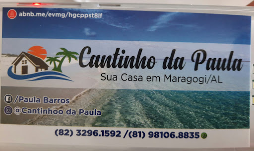 Read moreEscolhi o Cantinho da Paula para hospedagem de 5 dias em Maragogi/AL. Usei como referência as avaliações de outros hóspedes e além de não me arrepender encantei-me com toda a experiência. A pousada tem uma ótima localização. Um excelente café da manhã além de acomodações confortáveis e ótima limpeza. Mas gostaria de destacar o que para mim é o grande diferencial: o acolhimento, simpatia e disponibilidade da Paula ( proprietária da pousada). Se você vai pela primeira vez eu super indico o Cantinho da Paula pois as orientações dela foram fundamentais para organizar meus dias na região, passeios etc ( inclusive economizei com as dicas dela). Se você já conhece a cidade eu também indico essa experiência de hospedagem personalizada...