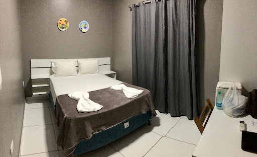Quartos - com espaço bom, estávamos de passagem e nos atendeu muito bem para dormir. O único ponto negativo é o barulho constante. Chegamos a tarde e como a pousada fica na beira da estrada, o barulho dos carros e sim alto vindo de uma casa ao lado nos incomodou bastante, porém, a noite ouvimos somente passos pelos corredores e portas batendo. Também havíamos solicitado quartos próximos um do outro, e fomos perfeitamente atendidos.