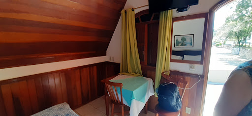 Foi minha primeira estadia e não gostei. Pontos positivos: Limpeza: apesar da poça d’água entre a cama e o frigobar, o chalé estava limpo. Funcionários: Simpáticos e solícitos apesar dos poucos recursos disponíveis. Pontos negativos: Manutenção : Exterior do chalé não corresponde ao interior; Roupa de cama velha e toalha rasgada foi necessário substituição. Segundo o recepcionista seria difícil conseguir tolhas em boas condições de uso. Cama de solteiro improvisada e sem lençol para cobrir. A mesma foi colocada sob uma prateleira com a cabeceira bem embaixo da mesma; Risco! Iluminação parca, difícil de enxergar mesmo durante o dia. No armário então nem se fala. O armário não possuía um cabide sequer. Não havia local para abrir a mala. O Chalé não é apropriado para receber 3 pessoas. Café da manhã sem opção; muito diferente do website. Bolos cortados e “passados”; nitidamente sombra; suco artificial. O suco parecia mais com suco em pó. No segundo dia, fomos surpreendidos novamente pois havia alimentos para para 2 pessoas no café da manhã. Ao nos ver a Sra. Railda se surpreendeu e informou que havia sido informada que eram apenas 2 hóspedes. Precisamos de suporte para ligar a TV; não por falha, mas devido a problemas no controle remoto.