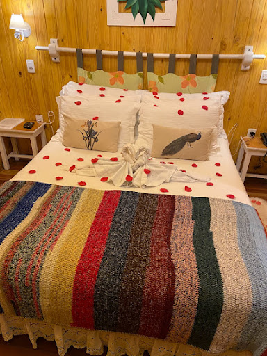 I could have not asked for a better pousada to stay in than this one. There are so many great things to say about this place, but I'm sure I will still not do it justice. The young gentlemen that helped us get settled, was also the same person who checked us in, and served our breakfast every morning. He is a true people's person. Always smiling, and showing genuine care for how you and your couple have been enjoying your time. The room was big, super clean, and with a nice fireplace that you can set fire to, whenever desired. The beds had warmers for those cold winter nights. The little stream that ran between chalets gave the impression that it was raining outside which helped us relax and enjoy a bit more rest inside our bed. The best breakfast I've ever had. And they are not cheap with the food. If you want more, they will bring more until you are completely satisfied. I will definitely be returning to this place, and although is a bit far off the main strip of Monte Verde, I actually prefer it that way! :) Definitely recommend to anyone who loves nature, quiet, and relaxing... They had WiFi available as long as you got close to the reception area, and cell phone signal is very spotty... Which actually turned out great, because technology can be very distracting and hinder you from actually enjoying your vacation. I give them 10 out 10. You will not regret...