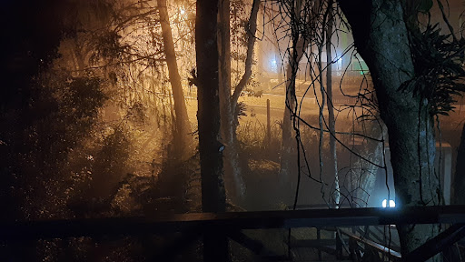 A casa na árvore é beeeem apertada dentro. Cabem 3 pessoas, (pois tem uma cama de casal e uma beliche individual em cima) o que deixa a casa com essa sensação de apertada, o banheiro é minúsculo (a pia por exemplo fica dentro do box). E tivemos a sensação que ela está precisando de uma pequena reforma, por exemplo percebemos uma goteira perto da árvore – sorte que não deixamos nossa mala ali – pois teria molhado as roupas. Além disso, o barulho durante a noite é extremamente alto por conta do tipo de material do telhado que absorve barulhos de galhos caindo, pássaros voando e andando no teto, entre outras coisas. Acordamos diversas vezes durante a noite assustados com o barulho.