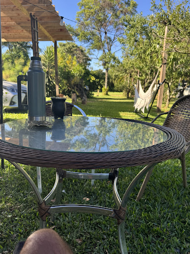 Read moreParamos una noche, camino a Brasil y a partir de ahora será el lugar elegido para los viajes. Dentro del mismo predio hay dos posadas “Escalera” y “Chácara”. Nosotros nos hospedamos en “Escalera”, que es de César, súper amable. El lugar es un oasis, solo queda a 7 minutos de la ruta, pero vale la pena. Al abrir el portón vimos varios pavos reales que se paseaban pavoneando sus colas gigantes, llegamos a última hora de la tarde y después de tantas horas de ruta parecían una alucinación. Tiene un parque muy grande con una arboleda añosa y frutales, todo cuidadísimo, una pileta y un lugar donde se puede tomar algo o cenar minutas, para no tener que salir, fue un alivio porque era feriado 25 de diciembre y estaba todo cerrado. El desayuno es completísimo y se ofrece en un espacio todo vidriado hacia los jardines. En cuanto a la habitación, estuvimos en una cuádruple estándar, que es impecable (es por escalera), los colchones súper cómodos, sábanas y cubrecamas nuevos. El aire acondicionado funciona perfecto. El entorno del hotel es barrio sencillo de Sao Gabriel, salimos a caminar y aunque es un barrio...