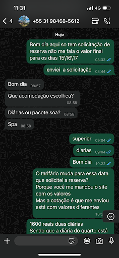 Esses valores não condiziam com o informado no site. Ao questionar a disparidade, a única resposta que recebi foi: “Ligue se quiser saber mais.” Após insistir, fui informada de que em feriados o valor das diárias mudava, mas novamente sem clareza sobre os valores exatos. Para piorar, liguei para o número fornecido várias vezes e ninguém atendeu. Infelizmente, isso me leva a crer que, ao verem minha foto e perceberem que sou negra, fui julgada e ignorada de maneira discriminatória. Fui tratada com total descaso, em um atendimento que parecia racista e preconceituoso.