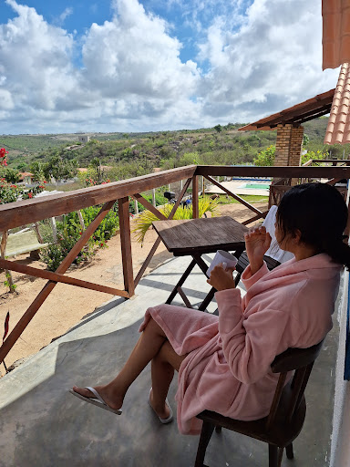 A pousada fica depois do centro de São Bento, antes de chegar na mesma tem um pequeno caminho de barro, mas é bem pequeno e de boa. A pousada é um tremendo sossego, surreal de linda, limpa e aconchegante, o nome faz jus ao lugar. A segurança é extraordinária, a gente dormiu com a porta da...