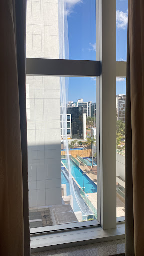 This hotel is beautiful,new,great amenities,awesome rooms but the service is the worst hotel service I have ever experienced.Front desk staff are the worst.Anything you ask first answer you get is a Negative one against you always.Like they are doing you a favor letting you stay there.First I arrived early at check in around 12 pm and asked If I could check in early of I paid for a half stay.She said no.Ok next I came back to check in around 4 pm and Guilherme assigned me a room different from what I paid for saying its whatever its available.After lots of arguing That I paid for a swim up suite I showed proof that I paid for a specific kind of room and he finally assigned me a room near the front desk and entrance to all rooms what it means as noisy as it could be.Then I request more towels since its not rugs to come up from the pool to the room so I had to use the towels on the floor .Front desk said the towels I have is the towels I get(2 )we were two so one towel for each.I said that was an absurd and I need 2 extra towels and he finally said he would send it to the room.Then my ac wasn't working properly.They said technician went home and nothing he could do .would not change my room because I was there only for one night.So after paying $90 dollars p night (almost 400 reais)I had to sleep in a room with an ac that wasn't working.Restaurant waiters are mean and rude.Do not stay here until management do some serious training to their staff.Service is...