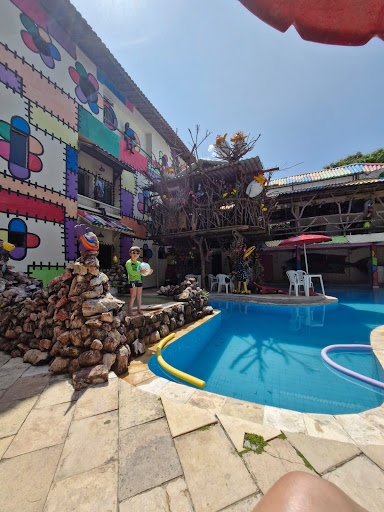 Área externa: Usamos muito pouco a piscina da pousada, tendo em vista que o período que fomos venta bastante e se o sol não estiver beeem forte, a água fica muito gelada impossibilitando de aproveitar a piscina final do dia ou até mesmo a noite. Tem algumas partes como o escorregador, que por ter partes de pedras eu acho merecia um pouco mais de atenção e investimento, pois tinha algumas partes com lodo, mas a piscina em si é limpa.