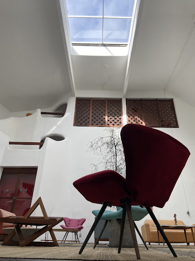 They say fortune favours the brave, or perhaps the foolhardy. We booked this place last minute (plus ca change...) while already out in Rio, for our last few days in Brazil. Fortune certainly favoured us. This is a gem of a place. ||Les Jardins is set in an astonishing modernist house worthy of a Bond film - all undulating curved white walls, mezzanine levels and beautiful hardwood floors. The furnishings are brightly coloured, and a little eccentric, but chic - all primitivist sculpture and de Lempicka-esque artwork. The rooms and the public spaces are all spacious and calm. The place is run by a quirky but lovely French couple who speak excellent English, as do most of their staff of friendly young Cariocas. They were able to provide plenty of advice on what to see and do. It has the feel of an upmarket guest house rather than a hotel. ||Due to our last minute online booking and an internet malfunction at their end, the owners didn't get our booking by the time we arrived. No problem - we were shown around the available rooms and given our pick. All of them were beautiful, and the one we preferred was not in fact the Presidential Suite with its swimming pool sized bathtub, but another suite with private terrace and a glass-fronted stone-clad bathroom you could feel on the edge of the jungle in. ||There is a roof terrace with spectacular views sweeping down the valley to Guanabara bay, and upwards beyond the adjacent rainforest to Cristo Redentor (although the January weather in Rio meant we only got one day of blue skies to see the full view during our stay here!). There is also an outdoor pool, although again owing to the weather we didn't use it. ||Breakfast is served on a covered terrace overlooking either the pool or the view down to the bay. We paid extra for the supplemental fruit, yoghurt etc which was not inexpensive but was worthwhile. The food was fresh and lovely, albeit choice limited as you would expect in a place this small. ||The only drawback of this place - and this is qualified - is the location. The hotel is in Cosme Velho - a district reasonably close to the main tourist areas but on the edge next to the urban rainforest and not served by the metro - and is on a steep hill about 10 minutes walk from the nearest bus stop. The area is mostly characterised by walled-off villas with no nearby restaurants or nightlife. To walk around at night would feel unsafe. This means a taxi ride in the evening is obligatory for a restaurant dinner or anything to do, but as the taxis are so affordable in Rio this really did not in fact pose much of a problem. ||I would certainly return here, and would strongly recommend pairing a few days here after a few days in one of the hotels on Copacabana or Ipanema for a stay in Rio. This allows the calmness of Les Jardins to recuperate after the frenzy of the carnival, and once you feel settled in this...