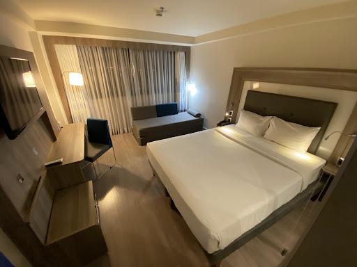 Read moreThere were some BIG negatives during my stay but I want to be fair because those negatives won't affect most guests - so firstly the positives.|This is a smart hotel. The rooms are large and the rooms overlooking the port afford good views.|The rooftop swimming pool (heated) is great and the gym and sauna are fine. Breakfast was also good with a great deal of variety. |The location, whilst not the best - not really much around (it's mostly an industrial area), I felt safe and it has good transport links. The tram stop is directly next to the hotel and takes you into Rio city centre in about 15-20 mintues. If you want to go to Copacabana/Ipanema you can either take the tram into the city centre and connect onto a metro - another 15-20 minutes to the beach, or you can take a bus all the way from just round the corner - Any Troncal No 6 bus goes to Copacabana/Ipanema. Coming back, all the buses went to Rodovaria from where you catch the tram two short stops back to the hotel.|The negatives - not all the front desk staff spoke sufficient English. I had a very messy check in - partly through a lack of being able to communicate. I wanted to use Accor points but the agent kept saying "no not possible". It turned out she thought I was trying to say my company was paying. A number of other issues meant it took me about half an hour to check in. There was only one staff member at the desk (14.00) and so those in the queue behind me were frustrated as well as myself. It was not all the agents fault but it could have been handled much better. Then when I had finally checked in and was in the lift I heard another staff member and her giggling at the event. Not a great welcome!|The other BIG negative was that on the first night there was an open air night club open opposite the hotel. The noise was unbelievable. They played great music but I could hear every single word and the beat kept going until 7.30am. I hardly slept the whole night. I have no idea how this is deemed at all acceptable given there are two hotels with about 600 plus guests who would have been affected. What is absolutely unacceptable is that the hotel took no steps to advise the customers of this event (I assume it was a one off) or apologise for it. A note under the door or ear plugs would have been appropriate). If you are considering staying here over a Sat night, please email the hotel to check there is no night club due to be held when you...