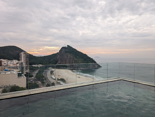 Read moreBooked this place based on Google Reviews about 8 months in advance on Expedia for $141 per night for a regular house room (including all fees and breakfast buffet for 2). Easy to use Uber from the GIG airport to here (25 minute ride at 11PM in evening for 112 reals / about $22 USD). The location is GREAT on the far far end of Copacabana beach (long walk from Ipanema) so you get the full view of the whole bay and beach. This is a quieter area, which is a plus in my opinion. The hotel is "ocean front" but across the road from the beach and near a number of good restaurants. Check-in staff were friendly and quick and we got a nice room facing the town (no problem, not spending any time in the room). Included WIFI worked fine, never had a long wait for the elevators, and overall the property is very nice. Our room was bigger than expected in such a big city and was in good shape and nice, with a refrigerator and safe. Shower was always good pressure and hot. Unfortunately, no in-room coffee. Even though the place seemed pretty full, we didn't hear a single noise at all at night, but I think they didn't have anyone in one of the rooms next to us. The breakfast buffet was above average (but limited variety of options) and enjoyable and worth adding to get your day going. The fresh fruit and fruit juices are definitely notable and worth enjoying. The servers kept our coffee cup full (nice, dark roast here). The rooftop pool and bar is NICE, like really NICE. We spent many enjoyable hours just having cheap local beers while enjoying the best view in Copacabana. We all agreed we would come back here for our next trip to Rio. The only small tiny annoyance was when I bought some ice cream at a local grocery store and asked at the front desk for a plastic spoon....they sent me to the restaurant.....who presented me an actual MFing menu of utensils that I could "order" to use in my room (I think it was about $2.00 for a full set). Ha, uh no thank you, you cheap nickel and diming chumps. Other than that, it was GREAT and IMO the best value in Rio...