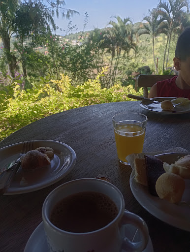A pousada é bem bacana, ambiente familiar, quem vai com criança escolha ficar hospedado nos quartos de 1 a 4, quem prefere mais privacidade escolha os chalés. Gostamos bastante da família do anfitrião, o espaço externo é muito bonito, bem conservado, com uma vista linda, com uma grande varanda e redes, uma piscina bem bacana e com uns locais pra fazer de fogueira, nós preferimos derreter uns marshmallow ☺️ . A única questão foi o café da manhã, que poderia ser mais variado e mais criativo. Obs: caso o hóspede se interesse e peça com antecedência, servem almoço, só fiquei sabendo por outro hóspede essa informação, seria interessante o aviso nos quartos ou na recepção dessa informação, pois a pousada é muito gostosa e dá pra ficar de boa por lá, lendo um livro, descansando enfim, agregaria um melhor...