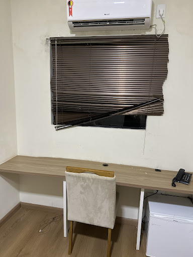 Read moreFiquei no hotel por conta de um casamento que tive na cidade. O check-in estava marcado para as 13h, mas meu quarto não estava disponível. Informaram que ainda estava ocupado (sendo que o check-out é às 12h) e só foi liberado por volta das 13h40. Quando entrei, o quarto estava molhado, inclusive o banheiro, e havia cabelos espalhados. A persiana do quarto estava quebrada e as paredes estavam sujas. Solicitamos a troca, e a recepcionista só efetuou após receber as fotos pelo WhatsApp. O novo quarto estava um pouco melhor, mas o banheiro ainda apresentava problemas: o chão estava visivelmente com limo, a persiana também com defeito, e o quarto ficava muito claro ao amanhecer. O café da manhã é bem simples. Quando perguntei sobre a possibilidade de sair às 12h30, devido ao atraso na entrega do quarto, não permitiram. Não voltaria e...