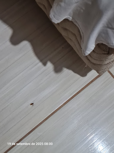 O QUE PODE MELHORAR: 1 - A fechadura do quarto que ficamos é daquelas chaves da década de 70, 80. São chaves grossas do tipo que abre outras portas (foto abaixo). A sugestão é mudar o tipo de fechadura para maior segurança e tranquilidade do cliente. 2 - Infelizmente matamos baratas no quarto o que poderia ser resolvido preliminarmente com uma detetização por empresa especializada.