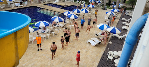 Pontos negativos: Ruidos, os quartos não tem isolamento acustico, o ruido é muito alto. Fiquei hospedado na ala "Studio" segundo o hotel é uma parte nova, e mesmo assim tem esse problema. Como os quartos são um de frente pro outro, o ruido é muito ruim, gritaria nos corredores, crianças brincando ate tarde, pessoas jogando truco fazendo um ruido imenso, bem ruim essa parte para quem esta em familia e com criança pequena; Cardapio extremamente fraco e sem variedade, nos 5 dias que fiquei la, tanto almoço quanto a janta, o cardapio foi exatamente igual: Arroz, Feijão, uma massa, Frango ou peixe e alcatra na chapa com cebola, todos os dias era exatamente isso, não sei se aos finais de semana, eles dão uma melhorada; Bar da piscina, extremamente pequeno, para pegar qualquer bebida (coquetel ou chopp) você ficava na fila, isso é bem ruim, você está de férias e ficar em fila de bebida, não da né; Cama do quarto, horrivel, péssima, no site falava que era uma cama de casal queem, depois de 3 noites dormindo mal pois a cama era horrivel descobri que na verdade eram duas camas de solteiro imendadas, eles colocaram uma capa e imendaram as camas, achei o cumulo mas nem reclamei, pois so faltava uma noite para ir embora; Detalhe como falei acima estava na parte "Studio" segundo o site parte nova do hotel; Pagamento para uso do cofre, você está indo em um hotel all inclusive, o cofre ja está no quarto, qual sentido de pagar para usar o mesmo? Gente é um cofre, não é nada demais. Tudo bem que, paguei R$ 12,00 para usar durante a estadia, mas achei bem bizarro cobrar independente do valor; Agua, essa parte é bem bizarra, eles não trabalham com agua mineral, seja em copo ou garrafa, ou seja toda aguá que você pedia o graçon tirava do bebedouro em copo plástico e te dava, nunca vi isso em lugar nenhum, muito estranho; Agua no quarto, essa eu quase chorei, no primeiro dia, deixaram uma garrafa de agua no quarto de 1,5l, lacrada tudo certinho, ok legal, ai nós bebemos, tudo normal. No segundo dia a garrafa estava la ainda, vazia, ai liguei na recepção achando que tinha esquecido de trocar e deixar uma nova/cheia, mas não a recepcionista me disse que a primeira garrafa era "cortesia" e que agora eu teria que encher a garrafa no bar junto ao garçon no bebedouro. Gente olha isso??? Essa sem duvida foi a coisa mais bizarra que ja ouvi, nunca vi isso em lugar nenhum, detalhe a estadia é "all inclusive", mas agua no quarto precisa encher no bar hahahahhaha. Piscina aquecida, não usei muito pequena e ficava sempre cheia e com muita aglomeração, como na piscina não usa mascara (obvio) acabei evitando, como era sempre cheia nao usei em nenhum momento;