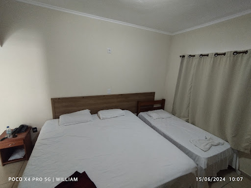 Li com atenção muitas avaliações do hotel. Estava com um misto de sentimentos, porem, ja na reta final da minha estadia, posso dizer que o saldo foi bem positivo! O check-in foi bem rápido! A moça que nos atendeu foi mega simpática e cordial!Ficamos no quarto 45. O quarto estava bem limpo, apesar de parecer que tinha um cheiro meio que de “fumaça” quando entramos. Durante nossa estadia, quando estavamos fora do quarto, algumas vezes sentimos um cheiro de fumaça. Nao sei se é de alguma fábrica/local perto fazendo alguma queimada. Talvez isso impactou no cheiro do quarto. De qualquer forma, as roupas de cama e banho estavam limpinhas. Cama confortável. O estacionamento era bem amplo e com vários vagas. Havia um parquinho para crianças tambem. A piscina era bem gostosa, mas a área poderia ser mais limpa e organizada. De qualquer forma, creio que a sujeira é de hóspedes que nao têm bom senso! O chuveiro é muito bom! Pressao otima! A torneira da pia tinha agua quente tambem. Havia frigobar, onde deixamos agua. AC funcionou muito bem! Não usamos a TV. A internet no quarto, para meu espanto, funcionou bem demais! Testei a velocidade e tava dando 30mb. Rodou bem streaming, sem nenhum problema ou falha de transmissão. Não teve nenhum grupo grande hospedado durante nossa estadia, então, achei tudo silencioso. Dentro do quarto, praticamente não ouvia nada de fora ou de outros quartos. Dormi super bem! Cama bem confortável! Cafe da manhã fartos e com variedade. A recepção tinha comidas e bebidas à disposição para compra. O hotel precisa de uma repaginada. Algumas manutenções, pintura e afins. Mas no geral, gostei muito e voltaria!