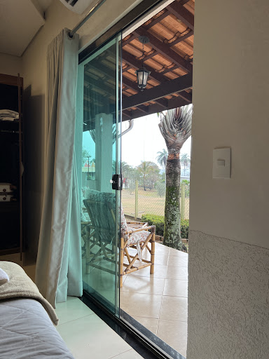 Everything was large, light and cold (both in temperature and in atmosphere, with, among, others bright white LED lights making you feeling to be in the hall of a railroad station). How come that one is unable to make a good hotel room with basically good material. A bathroom door that cannot be closed properly due to bad construction of the sliding door, resulting in an inundated room. No place to put your soap and shampoo in the shower, except for the floor. No place to hang your clothes in the bathroom, or your towels next to the shower door. No drinking glasses at all, even not one plastic cup. The towel rack, new I suppose, was badly fixed and almost came down). A new airconditioner that does not work so the room remains very cold. Quickly painted, so spots of paint on the furniture and the tiles, Damaged tiles, drops of ceiling material on the shower wall etc etc. Another frustration was that the hotel room was just a meter a way from a greenhouse which made me realize that the smell in the bedroom was dominated by that of chemical pesticides.And a last surprise I badly hit my head against a low part of the roof, as if all people are shorter than 1.50 meter. Price and breakfast reasonable. Positive point: the location is quiet. My advise: find a real nice pousada or hotel in Jaquariuno to feel like being in Brazil and not in...