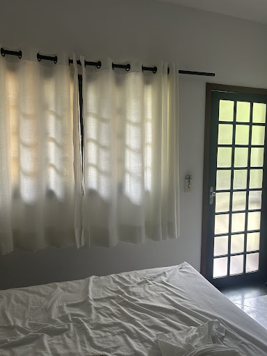 1- o quarto entra luz o tempo todo, mesmo a noite as luzes externas deixam o quarto claro demais , isso nos incomodou bastante, cama de casal com apenas uma manta, daí pra dividir ficava bem ruim- precisamos pedir extra, e paredes finas , você escuta tudo do ambiente externo;