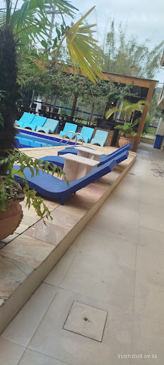 A ala da piscina quadrada aparentemente é um pouco mais antiga e fica na esquina,no início da rua, a uns 200m da recepção, piscina redonda e restaurante, que fica no fim da rua. Isso não foi uma surpresa pois já tinha visto sobre isto nas avaliações do Google. Pra se deslocar pra outras áreas da pousada vc precisa passar pela rua, oq não foi um grande problema devido a baixa temporada, porém se estivesse muito movimentado, talvez houvesse um desconforto ou insegurança, visto que há outras casas e recintos que não pertencem a pousada no caminho. Vc recebe uma pulseira no check in e transita sem fiscalização por todas as áreas da pousada. Oq me passou uma sensação de que qualquer um pode entrar, pois não há vistoria. Apesar do bairro ser aparentemente tranquilo, poderia ser melhor iluminado a noite.