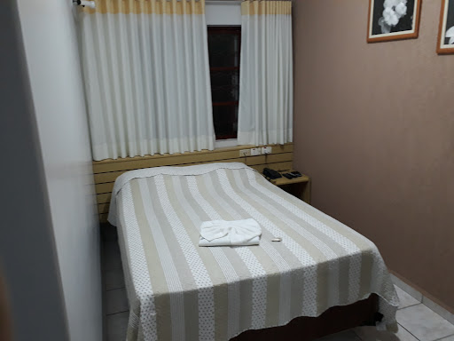 Read moreHotel bem simples, áreas em comum simples.|No quarto a cama é normal, box mas pequena. Eu fiquei com os pés de fora, pois a cama era pequena. Tenho 1,83 de altura.|Achei o café bem simples, os ovos estavam frios e secos.|Limpeza deixou a desejar, no lençol tinham manchas e fios de cabelo de outra pessoa. |Banheiro sem xampu , apenas sabonete. |Pelo valor pago no quarto standard (R$ 115,00) achei Que não valeu a pena...
