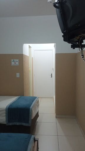 Ao chegar ao quarto, fiquei surpreso com a infraestrutura. A televisão de tubo estava em uma posição inadequada, as camas eram antigas e apresentavam manchas brancas nas cabeceiras. Além disso, o som do ranger das camas a cada movimento era incômodo. O teto de PVC, por sua vez, apresentava bordas mofadas, e o isolamento acústico entre os quartos era insuficiente, permitindo ouvir ruídos dos cômodos vizinhos.