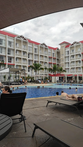 ESTRUTURA DO HOTEL não existe elevador para a recepção, existem duas opções: ou ir de escada ou uma íngrime rampa. Tive dificuldade em subir as escadas com as malas + salto alto para fazer o check out e não havia ninguém para ajudar. A estrutura é nova e bem conservada. Com bons móveis e estava tudo limpo. Não existe estacionamento interno no hotel para todos os hóspedes e alguns hóspedes precisam estacionar fora do hotel, causando enorme desconforto. Existem apenas 3 piscina sendo uma delas infantil, porem as piscinas estavam limpas e com a água em temperatura agradável.