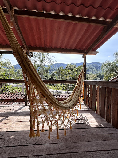 O chalé é muito acolhedor, ficamos no chalé maior com 3 camas e ele fica mais pro alto com a vista muito bonita do rio Ribeira e das montanhas. Ele não é próximo das cidades de Iporanga e Eldorado e fica um pouco longe pra sair pra comer, não oferece café da manhã, mas tem microondas, frigobar, cafeteira elétrica, pratos, copos e talheres. Tem uma varanda com mesa de madeira e rede muito acolhedora. Fica um pouco longe do PETAR (Núcleo Santana), cerca de 1 hora, mas fica a menos de 10 minutos do Vale das Ostras (trilha incrível) e uns 15 minutos da maravilhosa Caverna do Diabo. Tem uma cachoeira (Cachoeira do Sapatú) no quintal que é...