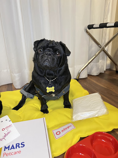 Nos recebemos um Kit boas-vindas com cochonete, comedouro, tapete higiênico e vários petiscos e sachês. Já os gatinhos que se hospedam recebem caixinha de areia. Que pena que o Dom não veio.
