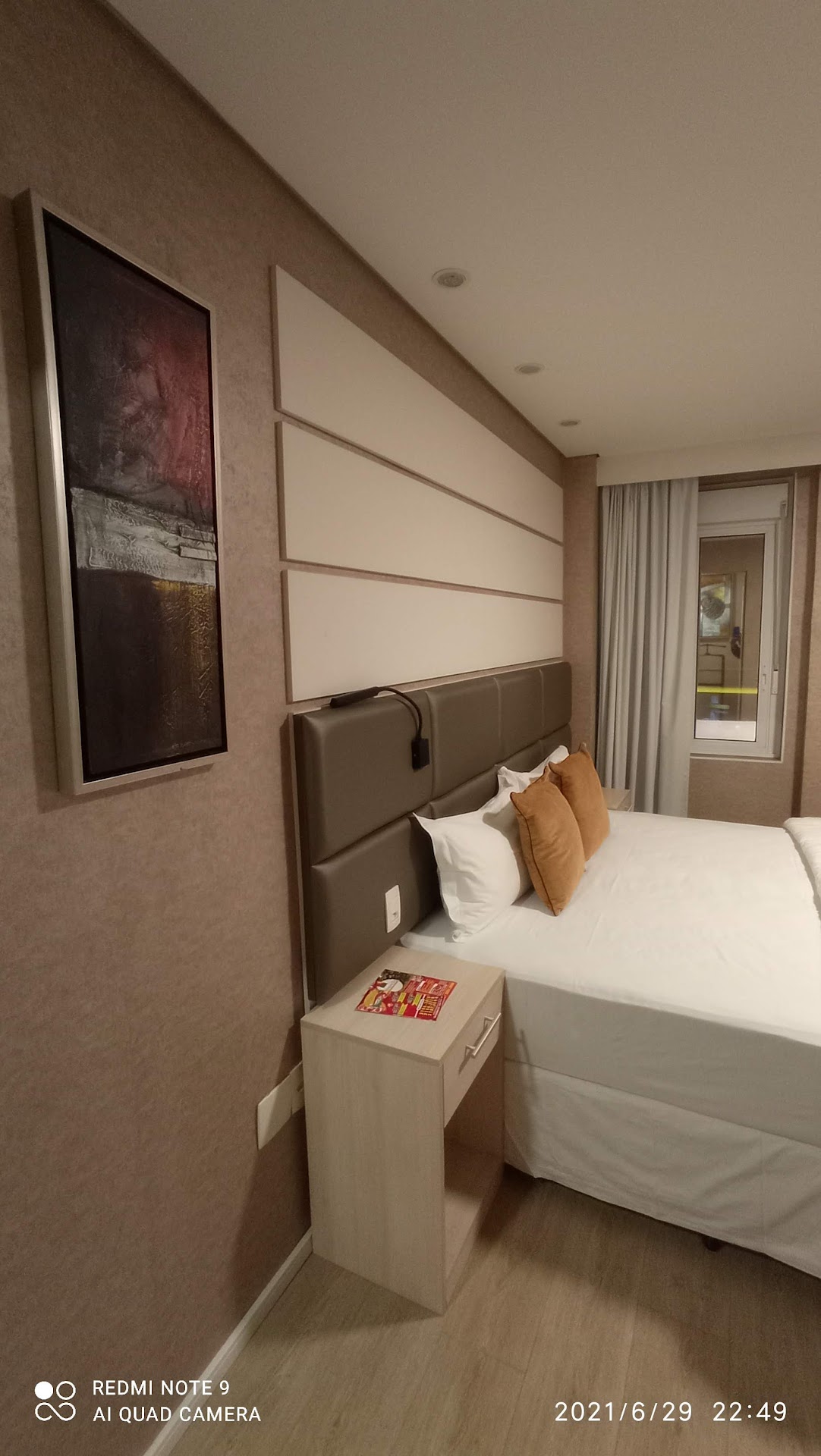 Read moreNo coração de São Paulo, num edifício que faz parte da história Paulista!!! Uma excelente opção para quem deseja um lugar ao lado da Sé, do museu catavento, zona cerealista, mercado municipal (lanches e pastéis clássicos, de mortadela, bacalhau e outros), rua 25 de março, praça da Sé (catedral, pátio do colégio etc.), Estação de metrô parque Dom Pedro, Radial leste, entre tantos outros lugares próximos, além da facilidade para se deslocar a qualquer região de São Paulo. Apesar da pandemia, tudo está muito bem organizado, conservado e limpo. O quarto causa uma ótima impressão de pronto. Existe frigobar, garrafa para aquecer água, dois copos, toalhas, shampoo, condicionador, sabonete, cofre, cabide (4), guarda roupa, muitos balcões, TV grande tela de 42", internet, uma poltrona, cama de casal grande, alguns quadros e uma espécie de suporte para roupas, logo na entrada, útil e bonito! Pontos negativos: algumas lâmpadas de led queimadas, falta de cadeiras para sentar ao balcão (para trabalhar num notebook, escrever ou tomar café apoiado), falta de orientação para saber o que são os interruptores com escritas orientais, edredom da cama com muitas manchas e barulho da rua não fica isolado de forma satisfatória, mesmo com tudo completamente fechado. Pontos positivos: decoração, TV grande, ducha forte e bem quente, colchão confortável, janela com persianas escamoteaveis externas,.cortina blackout e atendimento! Para quem deseja um lugar confortável e bem localizado, é uma...