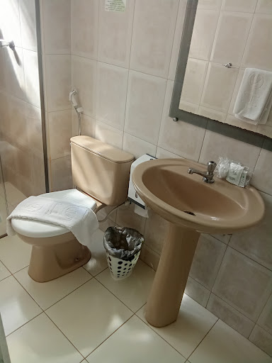 O banheiro é limpo, o chuveiro quentinho, funciona tudo muito bem. Toalhas branquinhas, novas e limpinhas, kit padrão de banho, armário para guardar suas roupas, mesa com duas cadeiras, frigobar, algumas opções lá dentro e na bancada, caso queira consumir e pagar depois (chocolate, preservativo, água, suco etc). Tem chaleira e até um sachê de chá! Disponivel xícara e copo.
