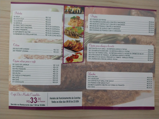 O café da manhã é bastante simples, com opções básicas como pães (inclusive um deles estava mofado), geleias industrializadas, frios, ovos, salsicha, cereais, frutas (apenas mamão), leite, suco e café. Nada além do essencial.
