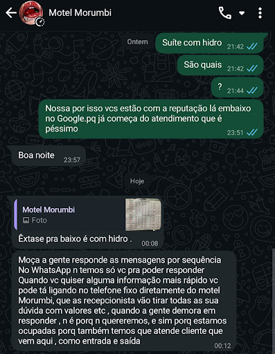 Minha experiência foi péssima!!! 😔 Como seria meu aniversário no Domingo(22/06), liguei na sexta conversei com uma moça chamada: Yasmin (mto simpática e educada), tirei algumas dúvidas... Indicou um certo 4º. Blz. Retornei a ligar sábado a tarde e fui informada q deixariam as chaves separadas. Fiquei tranquila. Chegamos 23:50; confirmei com a recepcionista a numeração do 4º q nos disse q somente 00:00. Ok;Aguardamos. Mas qdo retornamos tivemos a péssima informação q o mesmo estava 'ocupado' (aquela nojenta não poderia ter dito?! ).😡 Enfim, já estávamos lá mesmo... Pagamos e entramos. Q decepção!!! Queríamos voltar atrás; mas não dava. Affff... Pior motel q entrei. Td velho, sem iluminação, sem ar, som antigo, banheira?!? Um nojo(descolando da parede)👎🏼👎🏼. O teto com marcas de bolor. A pia parecia q iria cair a qlqr momento, o assento do vaso sanitário era aquele almofadado anti higiênico para uso mega coletivo ou podemos dizer até mesmo público. Café da manhã simples demais. Nem frios, danone ou suco nos oferecem. Não indico a ninguém (pelo menos a suíte e com crtz as do lado,q pegamos). Mas tbm se for pra gastar + de 400,00 melhor no G.(campo limpo)...