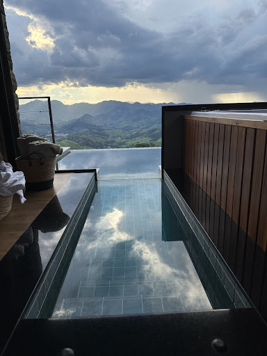 Read moreTranscendental… transcende ao espaço, tempo e até à imaginação! Perfeito para desconectar do cotidiano e reconectar à origem. Natureza, sensações, percepções, instintos! O local desperta todos nossos sentidos, inclusive o sexto e o sétimo. A paz, a beleza, todo o enviroment, superaram minhas expectativas e altos critérios. Trás à tona, de nossa criança interior, à nossa maturidade, com tudo o que essas fazes nos proporciona de melhor! Tudo é pensado nos mínimos detalhes, do suporte oferecido desde a pré reserva, ao pós check out. O local é de beleza ímpar, a vista de tirar o fôlego, o chalé extremamente acolhedor, num mix perfeito e equilibrado de rústico com tecnológico, minuciosamente planejado. O enxoval de cama e banho, são da Trussardi, as amenities são veganas, a limpeza e higiene impecáveis, a infra com persianas automáticas, ar condicionado, frigobar, adega, controle remoto até para a hidro e piscina, vaso sanitário inteligente, e até piso com aquecimento, facilitam e incrementam a estadia. Tudo top! Como reservei de presente de aniversário para meu companheiro, fomos surpreendidos com um fino bolo, um pró seco e uma mesa lindamente decorada até com balões de coração e outros mimos! A Isabella, Andrea e Jacira, formam um trio sincrônico, eficiente e principalmente acolhedor e prestativo. Estão disponíveis tempo integral para qualquer suporte, além da simpatia e luz! Enfim, escolhi a dedo o presente de aniversário para meu amor, mas também usufruí desse, superando todas minhas altas expectativas. Voltaremos com toda certeza, e deixo aqui também...