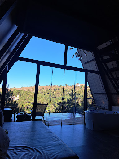 Fica afastado de Campos do Jordão. Contratamos 3 diárias. Nosso plano era passar o dia fora e voltar ao entardecer, ja que estávamos com um carro alugado. Mas, o acesso não é bom. O terreno é muito íngreme e isso fez com que nossa opção fosse não sair do chalé. Resolvemos pedir ifood e foi complicado achar quem entregasse no local. Mas, após muita pesquisa, achamos o restaurante Sabores da Montanha, que entregou. Mas, o entregador não pode entrar até o chalé. Então, nós tivemos que andar uma boa distância, com direito a subidas e descidas íngremes, para pegar a comida no portão principal.
