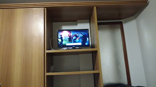 A TV parece um monitor de computador , se duvidar até menor. Da para ouvir as pessoas andando no andar de cima. A cama de casal era dois colchões de solteiros juntos de qualidade péssima, não consegui dormir quase nada, tanto pelo barulho quanto pela falta de conforto.