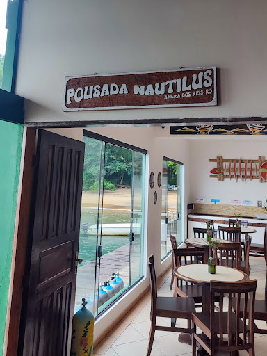 Na Pousada Nautilus há um restaurante que oferece bebidas (água, sucos, cervejas, refrigerantes) e também petiscos e refeições completas como batatas fritas, e bijupirá - muito saboroso), e também vieiras - que são moluscos refinados e caros (porção de vieira gratinada = R$ 115 em janeiro de 2018).