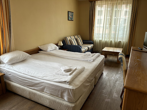 Read moreThe location s brilliant. Short walk to the gondola. Close by to some nice restaurants, supermarkets, street food places, equipment rental shops and schools. ||The staff are wonderful! Helpful, would answer all the questions, help if there is a problem, or at least try to help. Seriously, there are lot of rude service staff in Bansko, but these guys are wonderful. ||I would consider the hotel quite basic, but it has got everything you need. The rooms are decent size and very warm. One of our rooms (our group was occupying 3 rooms) had no shower curtain in the bath and no shower screen in the shower :)))) towels were changed daily. ||There is a kitchenette in the room, they provide a fridge and a kettle, couple of glasses and small cups, but no other crockery or cutlery. We found this very odd, so asked for some bowls and spoons and knife from the restaurant at breakfast. ||Breakfast is basic, but it's only 7lev. ||There is a spa, you can purchase towels at the reception for 5lev. There is a sauna, steam room, aroma room, couple of different showers. Shame the swimming pool was not working though. Could pre-book the massage, the prices are very reasonable and the massage was actually good.||||So generally, although it's not the stated 4* hotel, it's cheap and cheerful, so I...