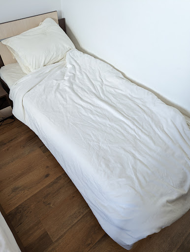 Rooms: We stayed at the 4 person apartment. The whole interior is cheap and used. There were 2 bathrooms but only one shower. One of the rooms had a burnt wall socket and the heating couldn't be turned on. The beds were old, uncomfortable, with springs and mine was broken. Shower was clunky. One of the balcony doors couldn't close. Overall a very disappointing experience.