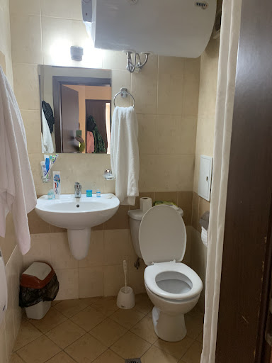 TERRIBLE HOTEL! Avoid it by all means! This is literally the most disgusting apartment we have ever stayed in, and I am even angrier as they say they are a 3 star hotel, and they welcome families with small children in these filthy rooms. They are scammers all the way. We have booked one apartment directly with the hotel, after seeing the pictures on the website, to join our friends that were staying there as well. The apartment bathroom in the pictures on the website was a nice, clean one, with a shower cabin, as for the family rooms on the website. We knew the apartments were in a separate building, and not in the main building, yet we did not suspect anything wrong, especially as the price is for a 3 star hotel as they advertise themselves. Nevertheless, the bathroom in the apartment we had received was horrible, you literally have a shower on the floor, near the toilet, with a filthy shower curtain, but the worst part is it literally smelled like FECES inside the bathroom. You could not stay in the bathroom for 2 minutes, and we were travelling with our small children, it was just disgusting. We asked for a different room right that night and the receptionist said the manager would come the next day and we have to discuss directly with her. The carpet in the apartment was filthy, it had hair and even bread crumbs in it, and we were just horrified by the conditions of this “3” star hotel. There was a housemaid that was coming every day and tidy our things, but did not used once the vacuum cleaner for the carpet or floor nor cleaned the bathroom floor, sink etc. The apartments are indeed in a separate building, right near the hotel, where apparently, everybody is smoking inside if they wish; we were literally waking up in the morning with our pajamas smelling like cigarettes, though we are not smokers. Smoke was all around the halls in the block of flats, getting in the apartments under the apartment doors. The pool is in the main building and is about 16 square meters, not enough for 4 families, let alone for all the guests, we had no space in it. There are not enough sunbeds at the pool for all the guests; I had to wait for my daughter standing in my bathing suit, near the pool, until she came out. The changing rooms are also small, about 15 lockers, with a small bench that would fit 3 persons max, one poor hair dryer. I was thrown back to the 80s. Breakfast was the same every day, enough variation and taste, yet not exquisite. Some dishes were odd to taste. At 10:00am sharp they were starting to take the food back to the kitchen, unplug the coffee machines, etc., even if some guests were still serving breakfast. The hotel and apartment buildings are also very far from the city center, you have to walk about 2.5 km to it in a neighborhood in construction. We left one night earlier than our 4-night stay, expressing our disappointment with the manager, who offered instead one night in the hotel. We then tried to get our money for the last night we have not used and they refused (they are...