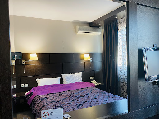 Read moreThis hotel is in a very convenient location near the dorms and newer buildings of the American University in Bulgaria and the central bazaar. The room we had was at the front, very modern and tasteful, and had a huge bed and balcony. The restaurant on the premises is extremely popular with locals and rather Greek-themed- you don't have to ask for the olive oil like most restaurants in Bulgaria- it's already on the table. Staff are indeed helpful and as others say will let you leave your luggage with no bother. Just a few downsides, though: if you are a really early riser as I am, you won't find the restaurant open or even be able to get a coffee. But no worries- directly across the street is a 24/7 booze, cig and snack shop with...