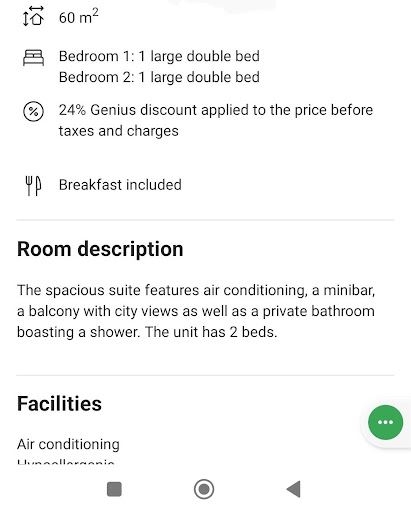 We had a problem with breakfast ( we didnt know that one room dosent have breakfast included because we booked in a rush and a lot to read ) and the manager gavr us free breakfast for that specific room and for that 5/5 from me, very nice lady. Location is preety good. Overall the rooms are ok and if you keep in mind the price, it is preety decent. We had some little inconveniences. We had 2 rooms, one of them had a broken AC unit that worked well for 3/5 days and we didnt quite observe the error until day 4 into the night( we were wondering why the AC keeps tetting less strong) and we just announced the girl at the desk about it and that's it. Secind problem, dont lift up the beds ( it's quite a mess under ). 3rd problem, in one room, if you shower for more than 5/10 minutes, water will rise up from the other sinkhole ( located near the toilet ) or leak from the sides of the shower, and surprise surprise you have your own private pool inside your bathroom. 4th. Room cleaning in the rooms was quite poorly made. We had sand and tissues in our rooms that we observed present 3/4 days in a row. Sand was a problem because we were at the beach daily ( and we tried to make as less sand as we could ) and from one day to another ut was still in the same spots. In general, room cleaning is strictly bathroom and balcony. For cleaning 7/10 i would say. 5th. One staff member is not the greatest friend with english,...