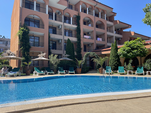 Сам отель понравился, небольшой, очень чисто (номера, территория, бассейн, ресторан и т.д.), персонал доброжелательный, работает четко, слажено, менеджмент на высоком уровне. Номера оснащены современными телевизорами с USB входом (спасибо туристам подсказали, что можно взять флэшку с мультиками для ребенка). Фен достаточно мощный. Ежедневно при уборке оставляют мыло, шампунь. В душе желательно было бы повесить шторку, чтоб не заливать водой все помещение (это как пожелание, а не претензия). WiFi в принципе есть везде (и в номерах), но ловит не всегда хорошо (лучше всего ночью, когда все спят), но чтоб написать сообщение и посмотреть ФБ вполне хватает.||Питание. Вкусно, достаточно разнообразно, хотя без особых деликатесов. Места всем хватало в ресторане. Напитки хорошего качества. Система все включено работает строго до 22.00 (рановато как-то, но мы знали об этом заранее). После этого в отеле наступает тишина (для нас это плюс).||В день заезда обедом не комят, браслеты могут надеть только после 15.00 (такое первый раз у нас, обычно даже завтрак давали; номера в сезон редко когда раньше освобождаются, но чтоб не кормить … такое впервые). Но мы договорились пообедать в день заезда вместо дня отъезда (спасибо, нам пошли на встречу), а позавтракали в кафе на центральной улице(прекрасный кофе). Заселение ждали у бассейна (в общем время провели с пользой). Бассейн небольшой, но места и лежаков всем хватало. Прилегающая территория парка ухоженная, есть настольный тенис и детская площадка (для самых маленьких отдыхающих). В общем отель очень понравился.||А вот что не понравилось, так это достаточно большое расстояние до пляжа, причем идти надо через оживленную улицу, где постоянно летают на гироскутерах туристы и местные жители. Зато это самый центр Солнечного берега (остановка общественного транспорта рядом, дискотеки и т.д. тоже в 5 минутах ходьбы). Недалеко расположен супермаркет (но при отдыхе all особой необходимости в нем не было). И еще что не понравилось (к отелю не имеет отношения): заход в море очень мелкий, чтоб поплавать надо идти и идти… Ко всему прочему, не повезло с погодой: постоянно был желтый флаг (купаться с плавательными приспособлениями типа круга или нарукавников запрещено, и следят за этим строго!) или вообще красный (вход в воду вообще запрещен). За все время путешествий такое было первый раз и очень огорчило, особенно нашу дочку. ||Всегда берем какую-то экскурсию, в этот раз выбрали Стамбул, очень рекомендую, понравилось, как и...