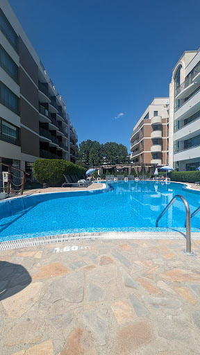 General thoughts/comments: the hotel is nice - the rooms are a good size, the pool areas are really clean. The pools are not heated so can be quite cold, the deepest depth is 1.6m, but there are 2 separate shallow areas too. There is a life guard on duty during the day until about 6pm. There is no music played by the pool so it's quite peaceful. There is a bridge across two separate pools at the front of the hotel, which is visually lovely when you arrive, but it is a bit steep and may be a slip hazard at times - be aware if your mobility isn't very good. Maid service is daily, so you can have fresh towels each day if you wish. Pool towels are not included so take your own, or you'll have to pay a fee for towel hire. Room safes are also an extra cost. In reception there is a bureau de change, but it was not open during our stay (but there are several options close by if needed). There is a pool bar open until 10pm - when we arrived, the staff insisted it was cash only, but you can add charges to your room which you can then pay off by card during your stay/at check out. There was food on the bar menu available during the day (sandwiches, fries etc) but we didn't order so cannot comment. Half board at the hotel is breakfast and dinner only, the restaurant is not open for lunch at all. Food in the restaurant was nice - breakfast offered cooked options as well as continental options and cereal/yogurts/fruit. Dinner had a good salad bar, plus several hot options, and you can help yourself to wine & beer too. I will add that top ups on the buffet food is a bit slow, I had to wait a few times. Not that I expect everyone to speak English, but reception staff and pool bar staff speak it well, just something to be aware of if you're concerned about language barriers.