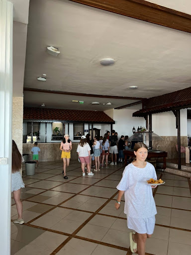 Була в таборі Royal holiday camp та жила в цьому отелі. На початку коли ми заїхали (одні з перших) все було добре, але потім почали заїжджати ще діти, по декілька автобусів в день, були велетенські черги в їдальню, простояти можна було від 30хв до години, їжі не вистачало на всіх, її розбирали за хвилини і продовжували стояти в черзі. Доводилось вечеряти мівіною. (На фото черги на початку, далі було більше але фото немає). Морозива обіцяного не було. Бар з їжею зʼявився в останній день. Організація ніяка, вся анімація зроблена лише для відео, не цікаво. На скарги реакції нуль. Номери жахливі, потребують ремонту, замість кнопки на унітазі кришка з-під фанти, ручка на балкон відвалюється. Аквапарк працював лише 2 дні, в ньому працює лише 2 гірки, в басейні плаває купа бруду та плитка з цього ж басейну. Єдиним плюсом у цьому таборі була керівник (вожата) Ліза, відносилася та піклувалася як про рідних, найкраща! Загалом залишилась не...