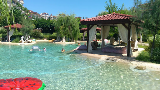 the hotel is big and clean with plenty of siting areas in the sun and in the shade. The swimming pools are very big and there is a very nice kids pool and playground. The BBQ area is well equipped and there is a lot of parking around the hotel. IT is located 15 MIN walk from the water park an10 from the beach. the drive from the hotel to the old city takes about 8-10 minutes.