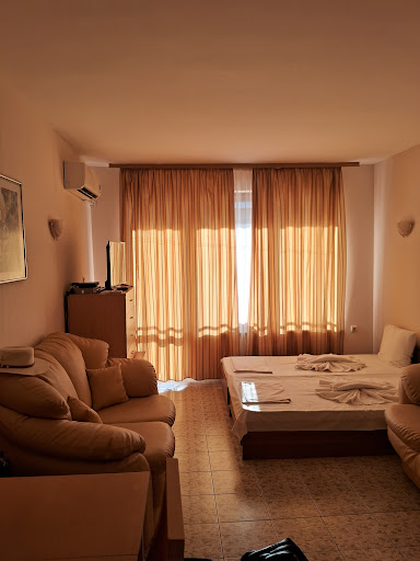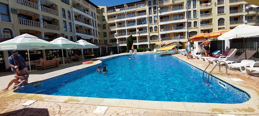 This is apartment hotel – not a typical hotel. It means that the whole complex is composed of apartments (various size), which are owned usually by private owners. As I have recognized, there are three ways to book apartment: (1) directly from the owner, (2) directly from the complex management, (3) from a few global Internet booking companies. I have decided to book directly from the complex management. The most important advantage for me was that is something happens (for example shower collapse, problem with water outflow in the bathroom, need to change bulb), I was sure that I would get proper assistance without any delay. Additionally, I knew when making booking how often the apartment would be cleaned, towels and bed linens changed. This is for me worth to pay even slightly more than in the case of booking directly from the owner. In the case when booking from the owner or global booking company it is worth to clarify in advance such details to be sure about the cleaning (it can happen that no cleaning is offered during the stay) and procedure if technical problems in apartment appear. In the case of my booking I have got even more frequent cleaning and towels / bed linens change that I was promised.||The complex is located in the middle of the way from Sunny Beach centre and Old Neseber There are 300 meters to the bus stops(price 1 Lv) or small road “train” (price 3 Lv) to get there.||The supermarket ZORA (one of the biggest in the area) is next to the complex gate.||The walking distance to the beach is about 600 meters. Sun beds and umbrellas can be booked, each peace costs 8Lv (no time limit). If you don’t book at least one peace (umbrella or sun bed), you have to keep your belongings or use private umbrella in the places slightly far from the sea (outside official sun beds area).||The guests are asked not to play sound music after 11 pm and to be quiet after midnight. So it is a very good place for the people who want to sleep in then night. Also no loud music from the restaurant which is located on the ground level. Restaurant is a good place for a rest during a day – there are tables outside (but all the day in the shadow) and inside (a/c is usually switched on). We ate there just a small dishes during the day, but to eat the main meal we went to Bistro Sarov (local restaurant opened the whole year), located 300 meters from the complex, next to the bus stop (direction Neseber) – very good dishes (also large selection) , prices lower than in any other restaurant in the area.||The complex is clean, what is important especially in the case of corridors and pool area. The pool area is cleaned every day in the morning. Also the pool was clean.||The pool was not crowded, it is rather big comparing to other pools in the area. The depth is 1,20 m in any part of the pool. There is also a small “pool” for children (depth 40 cm). I stayed there 3 weeks with my family. In July it was possible to find sun bed any time of the day. In August the situation has changed and it was very difficult to find it after 9 am. I don’t know why. May be more guests arrived? There are also some umbrellas available (as I remember 8) – usually occupied very early. Sun beds are slightly hard as there are no mattresses. ||We have booked two bedrooms apartment + living room with kitchen area and washing machine + two bathrooms. And there was three a/c devices – so not only in the living room but also in each bedroom. This was very good apartment to relax in comfortable conditions.||The WiFi is free in the lobby (very small and in the evening usually all seats occupied) and in the restaurant. To have WiFi in the room it was necessary to pay – the fee was 30Lv for 2 weeks and 40Lv for 4 weeks. It was slow, so enough to check mailbox or read new but no possibility to watch movies...