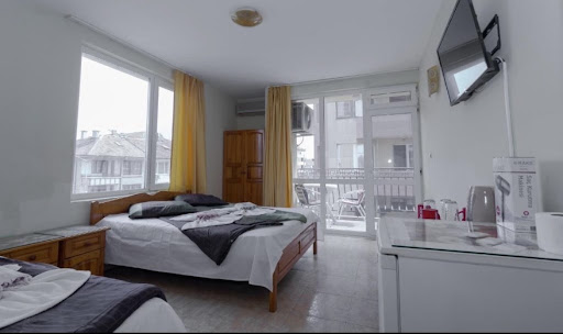 Read moreКато къща за гости,а не хотел е добре.Има всичко необходимо за престоя ви...тв,интернет,самостоятелна баня,климатик и не на последно място тераса.Има и голяма обща тераса за хубави събирания за по-големи компании оборудвана с фурна,котлон,скара,кафе машина и всичката необходима посуда.Камериерката влизаше всеки ден в стаята,което ми направи много добро впечатление.Все пак сме наморе и носим пясък в стаята,който дразни.Това наистина ми донесе радост,посещавал съм и тризвездни хотели и няма къде да си изхвърлиш боклука.Като локация на 300м от центъра,на около 650 м от централния плаж,само на 70м от север е морето,но е скали.Има уникален хладен бриз.И най-важното,няма комари.В близост има хранителен магазин,плод зеленчук,аптека и банкомат.Услугата определено покрива цената.Остава само да се насладите на...