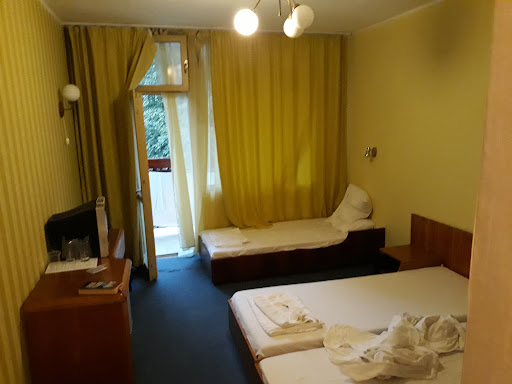 Read moreThere was a promo price on booking.com, like 50% of regular prices and that is why we came here for several days. However even the 50% discount does not make the stay worth it. The place is maybe 40-50 and more years old building from the socialist era, not renovated at all besides maybe some cosmetic paint and newer lobby chairs, ancient furniture and building falling apart, it is like time travel. The rooms and the place look nothing like its pictures here and on booking.com. There are some efforts to keep it clean but it is very large old and worn out. The only good thing is the nearby Atliman beach - 10 min walk, and the high trees grove around the buidling. However the beach is packed with too many people and there is an additional charge of 18 BGN for umbrella and two chairs, which is not avoidable as there is almost no other space on the beach to sit but to pay. The hotel advertises on booking that is it is on the first beach line (na parva linia) but this is not true, there is not even partial sea view. The surrounding area is very dirty is very noisy all night long, absolutely no quiet hour, there is very loud live folk music half of the night and no sleep. Noises from next bathroom clearly audible as though sharing bathrooms. Wifi only in the lobby. Bathroom is lamentable and so is the room furniture. No AC. Fitness is on the base of some stairs and was locked, looked ancient and dirty. There are no road signs to the place and no outside signage at all so noone can find it without asking several times. Unfriendly uncaring staff and place. We would never return or recommend the place even at the promotional price...