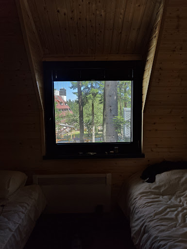 Very convenient location in Borovets. Cabins are nice, just like the pictures, but the stairs are very steep, almost a ladder. For some reason there's a "bar", never open but playing music 24 hours for no one. This is annoying if your room faces it and you need the window open. Windows do have bug...