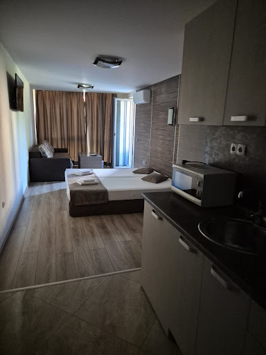 These appartments are clean and modern bedding was comfortable.|The shower toilet is an all in one wet room so be careful where you point the shower head as soggy toilet roll is useless.|The cleaners knock in the mornings and check if you want any cleaning, towels etc. Tv's were on the wall one in main room and one in bedroom. Only a couple of english speaking channels, rest are euro.|The staff speak a minor ammount of English and we found them friendly and you can get round that with google trans if need be. Whether this was because our friends pick us up at Sofia and drove us there so spoke to the receptionist when we arrived had any influence not sure.|Its well placed for the high street shops etc and park where we spent lots of time.|Two minutes and your there.|We had a small balconey with a clothes horse two air con units main room and bed room.|Only gripe was we were short of some cups short trip to reception sorted that.|Reception also sorted iron / board and small hair dryer.|Opposite reception there is a local shop which is open late.|The building is split and one end is still being developed internal fittings however they seemed to be well on...