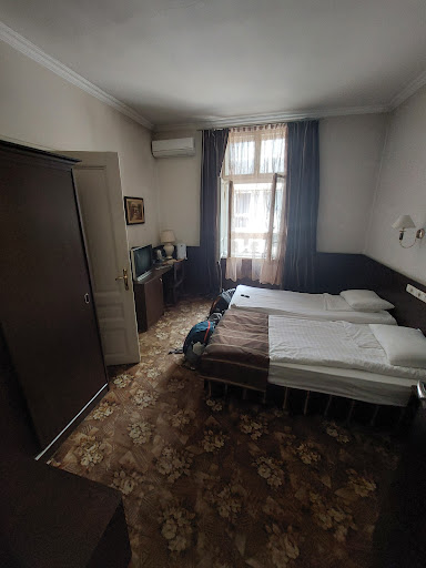 Read moreExcellent emplacement, dans la rue Verila, petite rue très calme toute proche de l'avenue Vitosha et du centre ville.Hôtel genre pension de famille très calme dans une grosse maison avec un petit jardin sympathique.Chambre spacieuse,à la moquette un peu défraîchie , grande salle de bains récente très propre avec une vaste cabine de douches.Climatiseur individuel récent et efficace.Aucun bruit...||Petit déjeuner bon sans être transcendant (je n'ai pas testé la charcuterie et le fromage) : thé, café, yaourt, céréales, crêpes, fruits frais,pain.||Wifi gratuite mais lente et instable dans la chambre.||Facilités pour imprimer la carte d'embarquement du vol retour.||Tarif raisonnable à 37 euros la nuit, mais j'ignore ce qu'il en est des autres hôtels de Sofia.||L'accueil est bon, surtout de la part d'un jeune homme dont j'ignore le prénom.Un petit bémol : à mon arrivée, j'étais aux prises avec un chauffeur de taxi escroc (conseil : pour gagner l'hôtel depuis l'aéroport, prendre un taxi jaune OFFICIEL en s'adressant au bureau correspondant de l'aéroport, le trajet ne coûte pas plus de 10 leva soit 5 euros). J'avais eu le tort de ne pas suivre les consignes du "Routard" (entre autres) et j'ai été abordé par des personnes insistantes proposant un transfert pour 50 puis 40 puis 30 leva.J'ai "conclu" pour 20 leva (déjà le double du tarif normal). Le compteur ne marchait pas.A l'arrivée le chauffeur tapote sur celui-ci et me sort un "ticket" en bulgare avec une somme de 30 leva (pour les encombrements !!!). Bref je refuse lui donne 20 leva et nous allons à la réception de l'hôtel où le ton monte...Ceci pour dire que je n'ai eu AUCUNE AIDE DES PERSONNES PRÉSENTES et me suis débrouillé tout seul avec le chauffeur menaçant , en restant ferme évidemment.J'attendais plus de soutien pour un client de l'hôtel...FAITES DONC ATTENTION car il s'agissait en l'occurrence d'un FAUX TAXI jaune avec de faux tarifs affichés, pas de compteur, une vraie escroquerie. A Sofia tout le monde semble considérer cela comme "normal", on m'a dissuadé de me rendre à la Police.||Autres (petites) critiques : wifi de qualité médiocre dans ma chambre, il y avait un autre réseau disponible "The House" avec un excellent signal mais je n'ai jamais pu savoir pourquoi on ne pouvait l'utiliser.||Par ailleurs ma chambre donnait sur une cour intérieure...